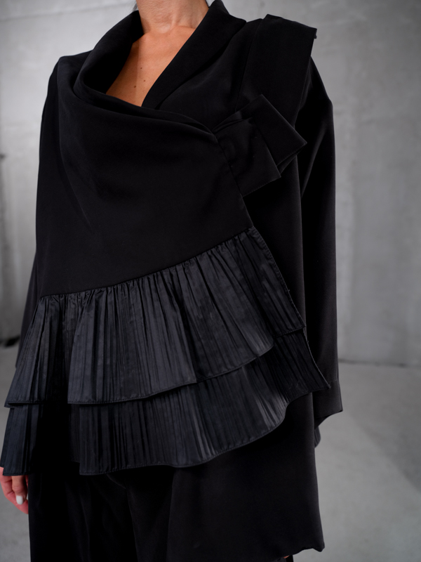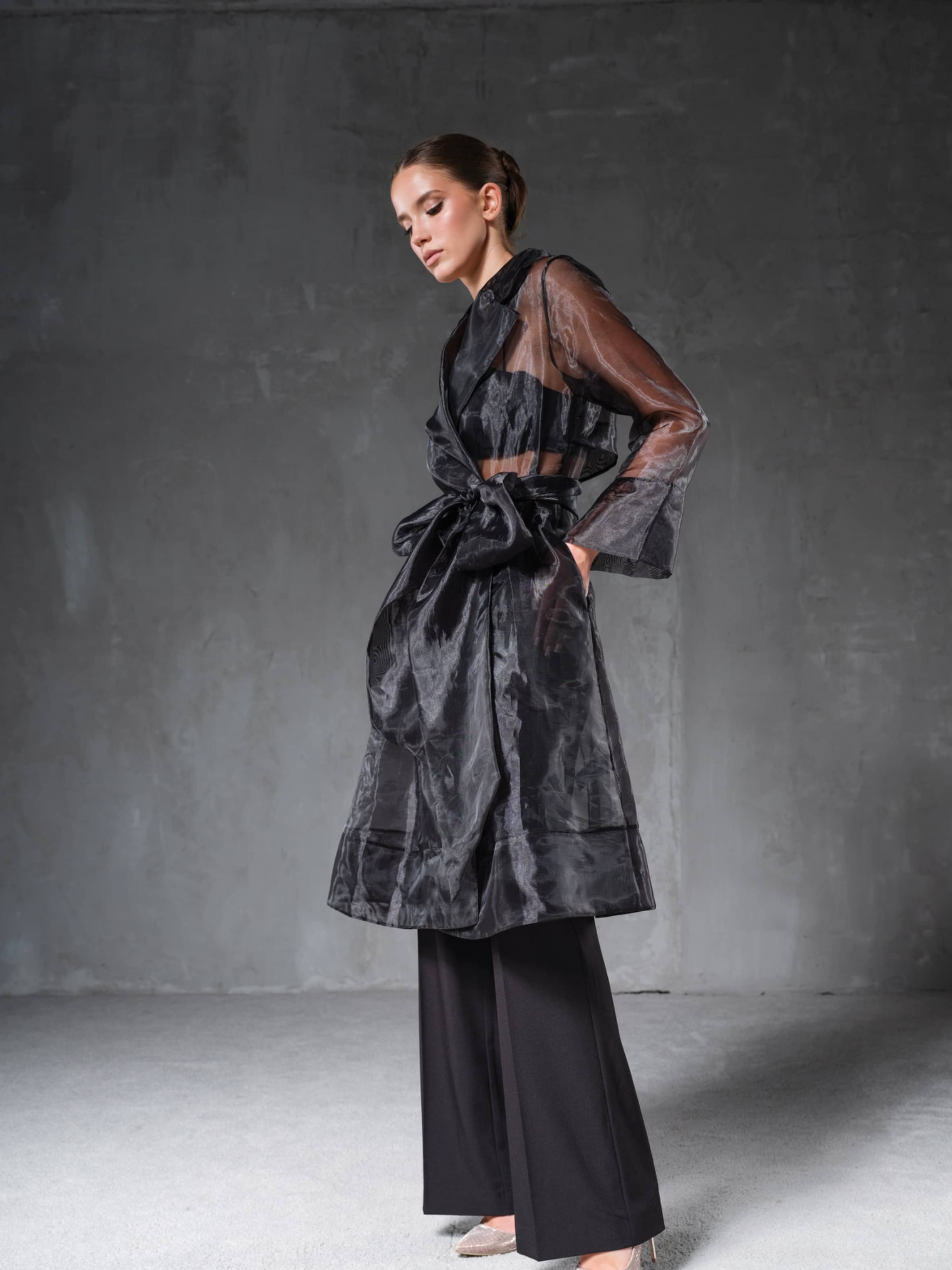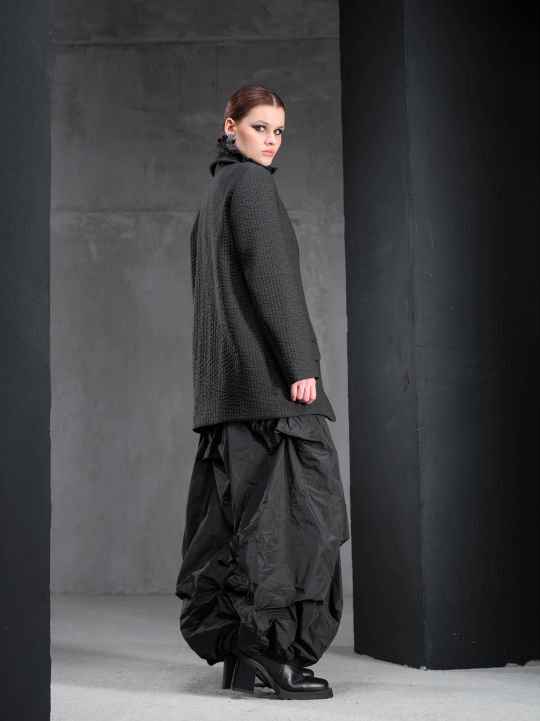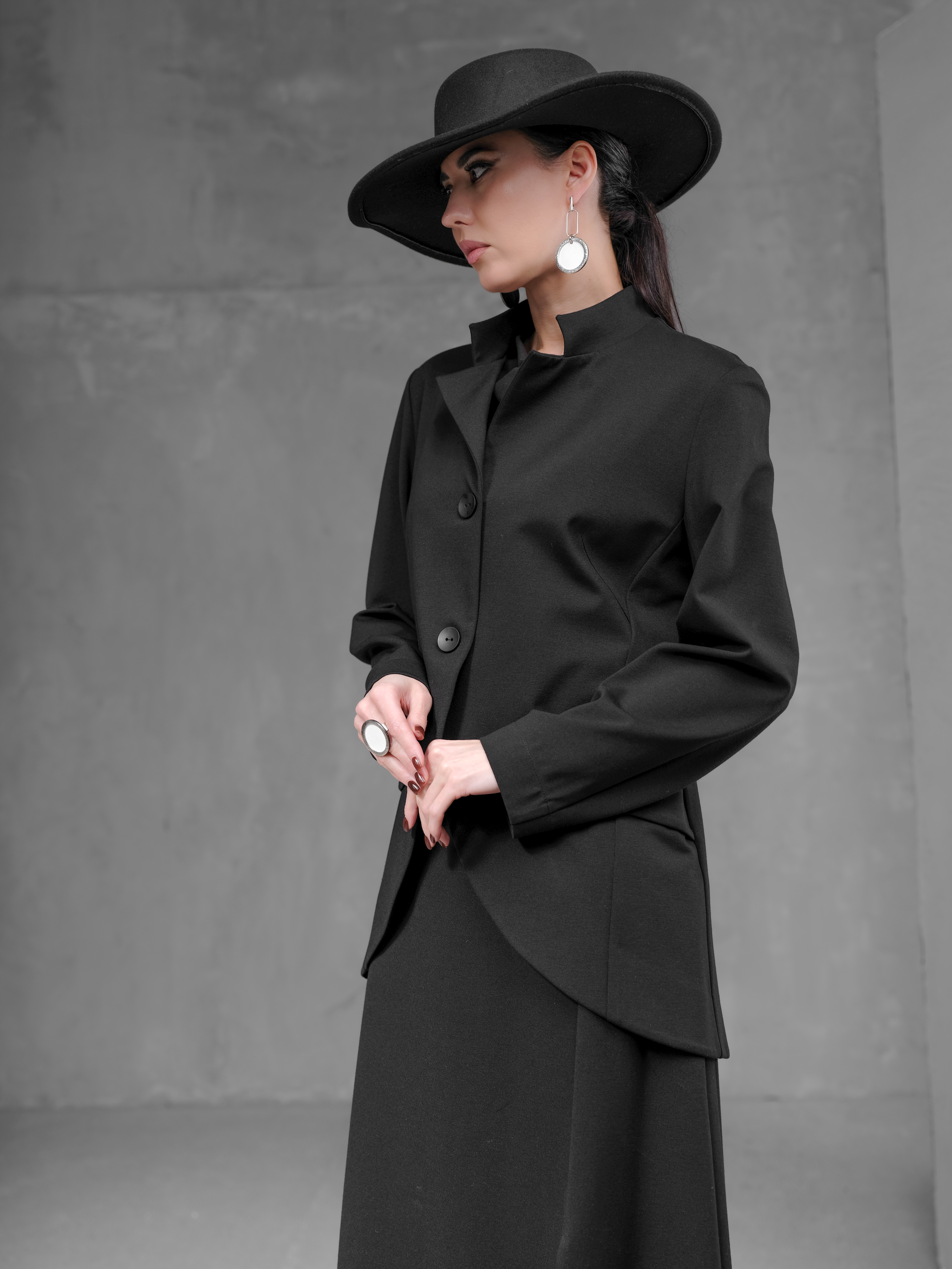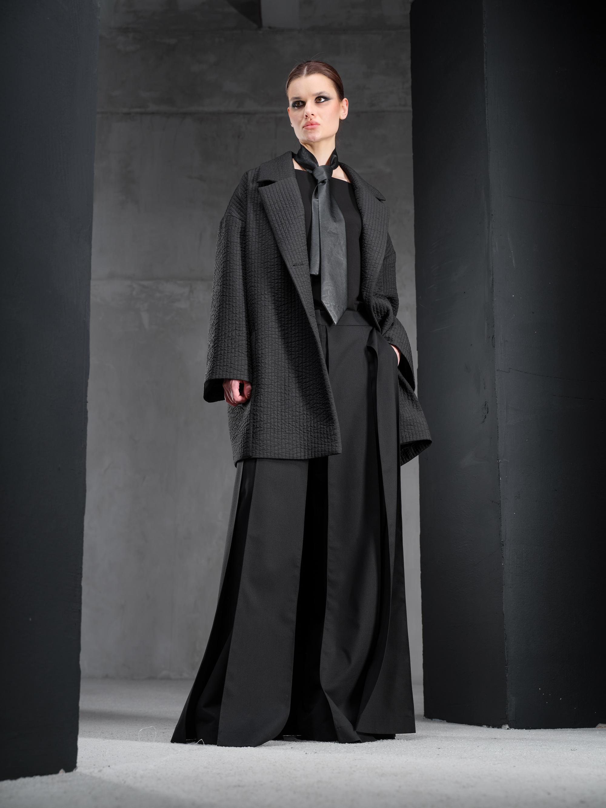 Основа коллекции – монохромная палитра, сложный архитектурный крой в чистых линиях, полная размерная линейка, учитывающая все типы фигуры, и всесезонность, позволяющая легко миксовать модели и создавать универсальный гардероб вне зависимости от времени года.
